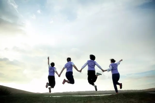 她们, 牵着手,迎着微风, 放声欢笑着,大声歌唱着, 纵情欢舞着......